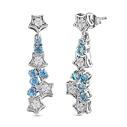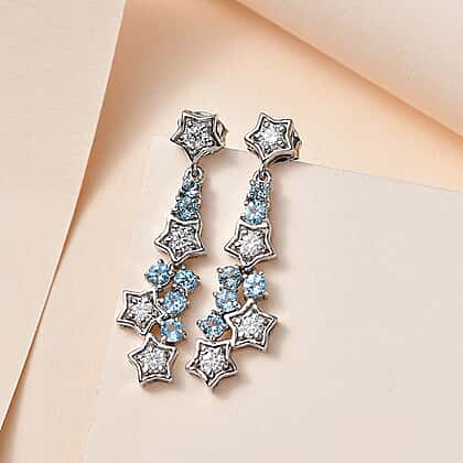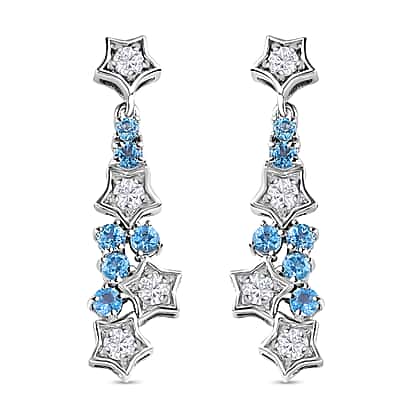 GP Celestial Dream Collection - Moissanite & Skyblue Topaz Dangle Earrings in Platinum Overlay Sterling Silver 1.95 Ct