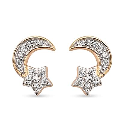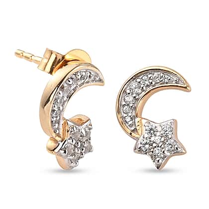 GP Celestial Dream Collection - Natural Cambodian Zircon and Kanchanaburi Blue Sapphire Star and Moon Earrings in 14K Gold Overlay Sterling Silver