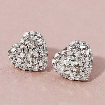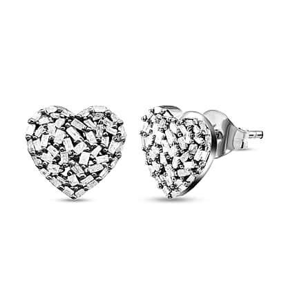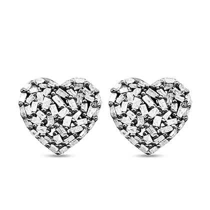 GP Heart Collection - Diamond (Bgt), Kanchanaburi Blue Sapphire Heart Stud Earrings (with Push Back) in Platinum Overlay Sterling Silver 0.50 Ct.