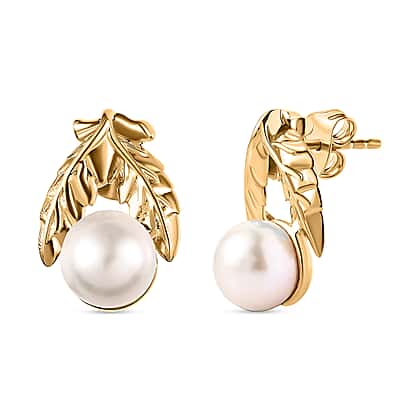 GP Italian Garden Collection - White Fresh Water Pearl Earrings in 18K Yellow Gold Vermeil Plated Sterling Silver 15.84 Ct.