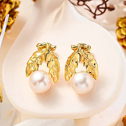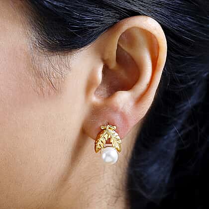 GP Italian Garden Collection - White Fresh Water Pearl Earrings in 18K Vermeil Yellow Gold Plated Sterling Silver 15.84 Ct