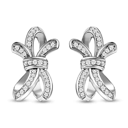GP Ribbon Collection - Diamond Bow Earrings in Platinum Overlay Sterling Silver 0.40 Ct