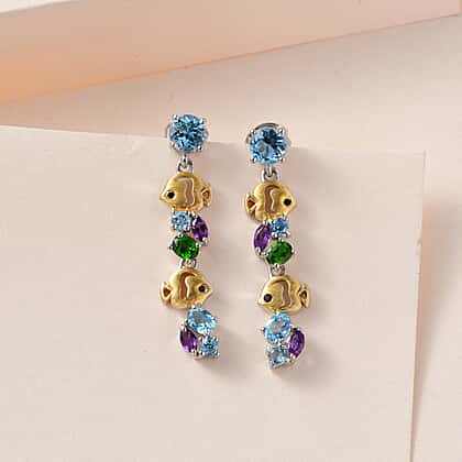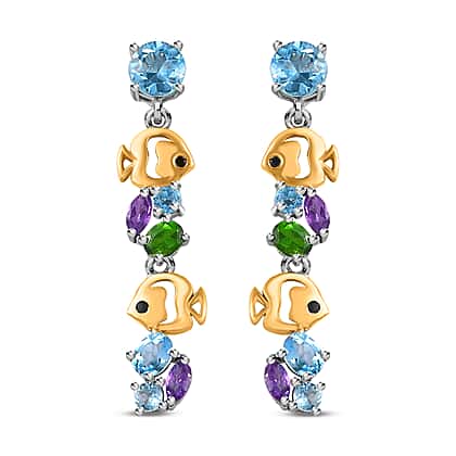 GP Sea Life Collection - Amethyst & Multi Gemstone Dangle Earrings in Sterling Silver 2.82 Ct.