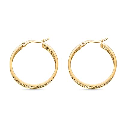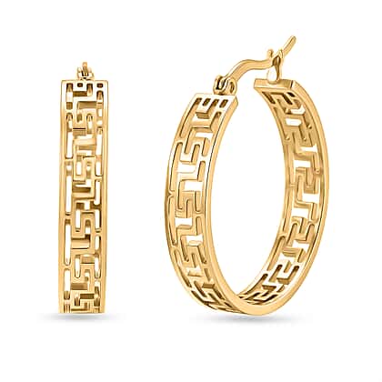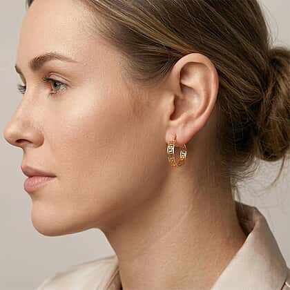 Greek Key Hoop Earring with Clasp in Yellow Gold Tone