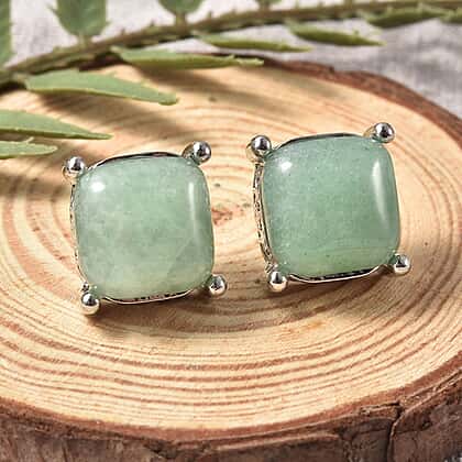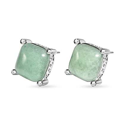 Green Aventurine Stud Earrings in Silver Tone
