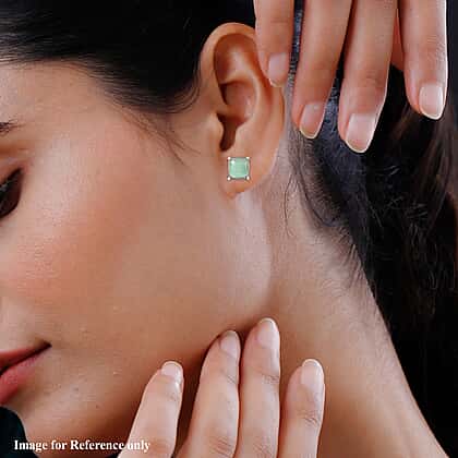 Green Aventurine Solitaire Stud Earrings in Silver Tone in 7.6 Gms