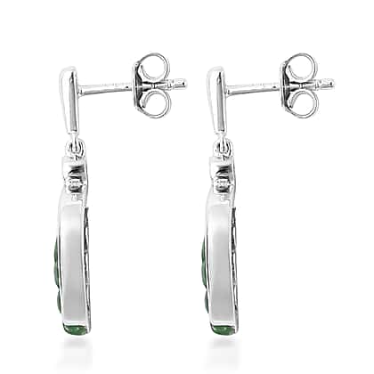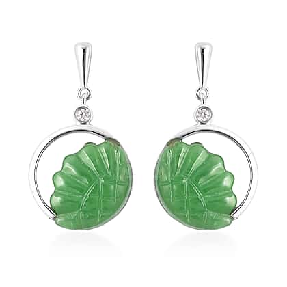 7.25 Ct Green Jade and Cambodian Zircon Drop Earrings in Rhodium Plated Sterling Silver