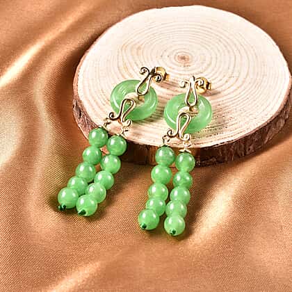 Green Jade Beads Dangle Earrings in Sterling Silver 45.70 Ct