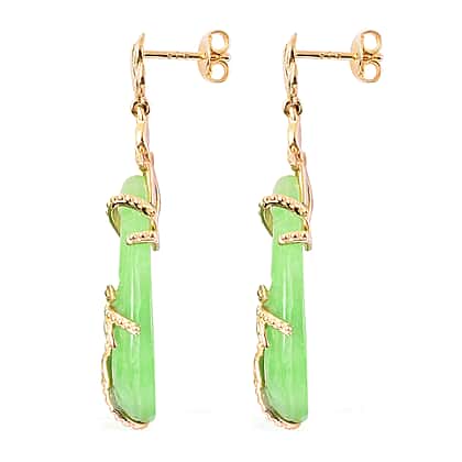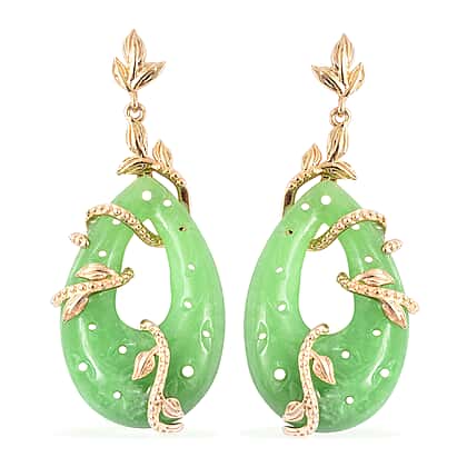 Green Jade Leaf Vine Earrings (with Push Back) in Yellow Gold Sterling Silver 38.75 Ct.