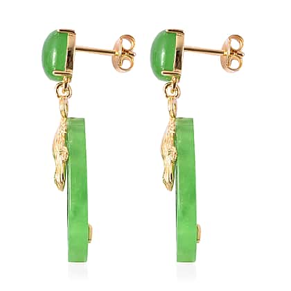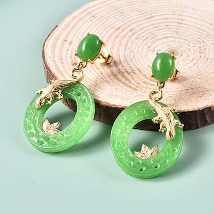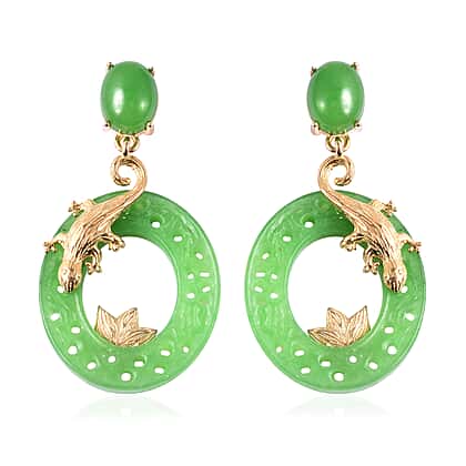 30.25 Ct. Green Jade Lizard Circular Earrings in Yellow Gold Overlay Sterling Silver