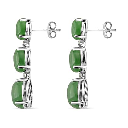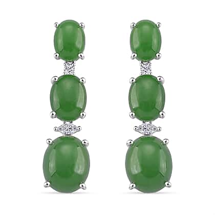 Dyed Green Jade and Moissanite Drop Earring with Push Back in Rhodium Overlay Sterling Silver 17.90 Ct.