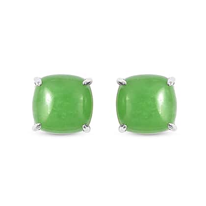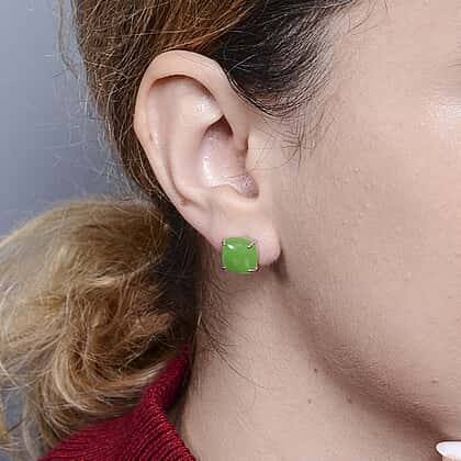 9 Ct. Green Jade Stud Solitaire Earrings in Rhodium Plated Sterling Silver