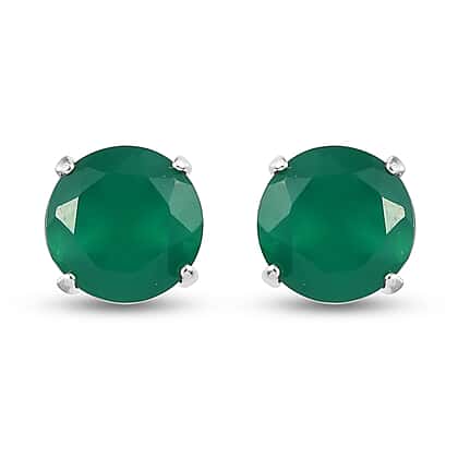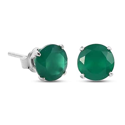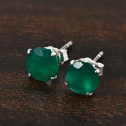 Green Onyx Stud Earrings (with Push Back) in Sterling Silver 1.43 Ct.