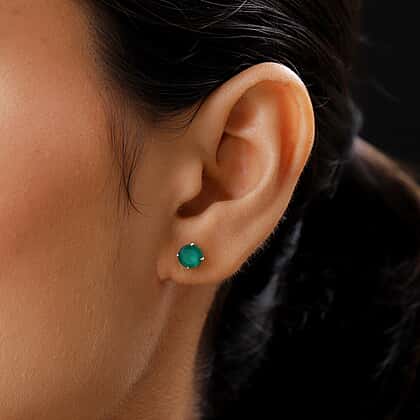 1.43 Ct. Green Onyx Solitaire Stud Earrings with Push Back in Sterling Silver