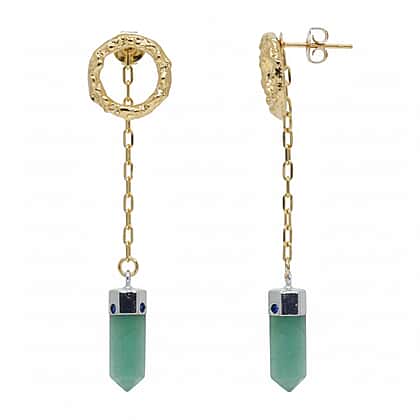 Green Quartz Dangling Earring with Push Back in Yellow Gold Plated 12.00 Ct.
