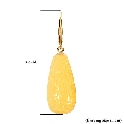 Hand Carved Honey Jade Drop Earrings in Yellow Gold Plated Sterling Silver 200.00 Ct.