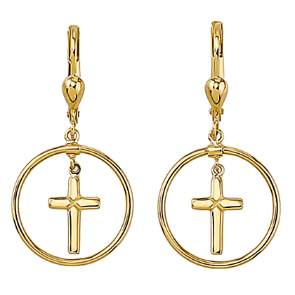 Hatton Garden Closeout - 9K Yellow Gold Dangle Cross Charm Earrings