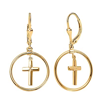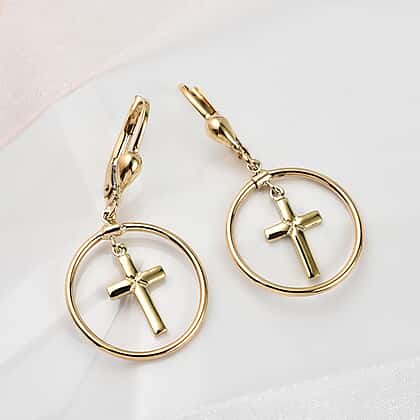 - Elegant 9K Yellow Gold Dangle Cross Earrings