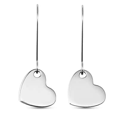 Heart Charm Earrings with Kidney Wire in Silver Tone