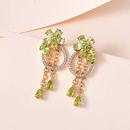 Hebei Peridot and Natural Zircon Dangle Earrings in 18K Yellow Gold Vermeil Plated Sterling Silver 3.81 Ct