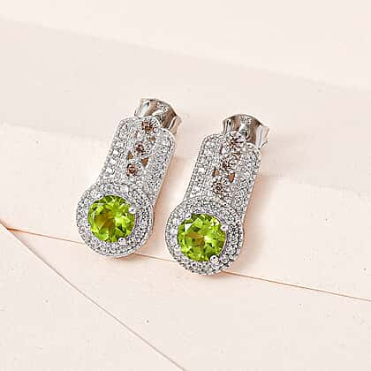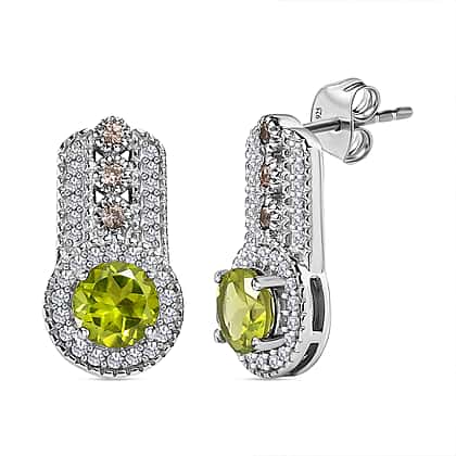 Hebei Peridot, Brown Zircon and Natural White Zircon Earrings in Platinum Overlay Sterling Silver 2.56 Ct