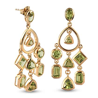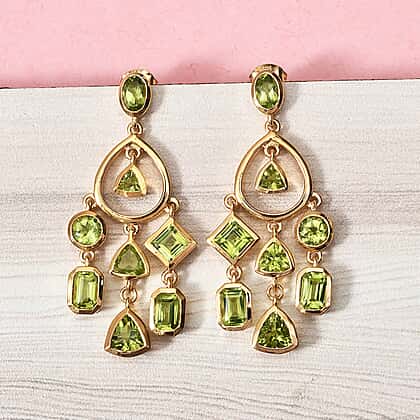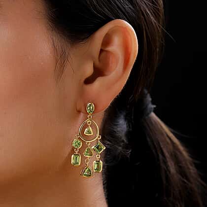 9.62 Ct. Hebei Peridot Chandelier Earrings in 14K Gold Plated Sterling Silver