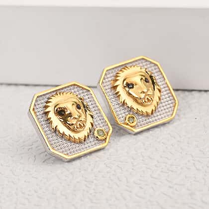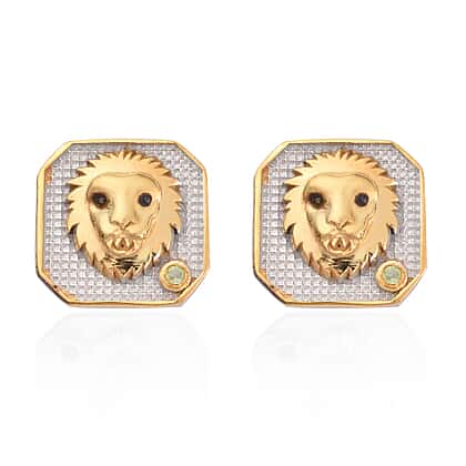 Hebei Peridot Leo Zodiac Stud Earrings (with Push Back) in Yellow Gold and Platinum Overlay Sterling Silver