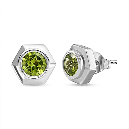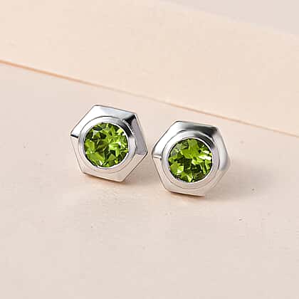 Bezel-set Hebei Peridots gleam like jewels from an enchanted forest in this remarkable pair of earrings crafted in sterling silver. The look of solitaire studs is made more overwhelming by the smooth finish and priceless lustre of the platinum overlay. The studs are as fashionable as they come. They get a very crisp look from the refreshing hexagonal frame that breathes a newness into this time-tested design.