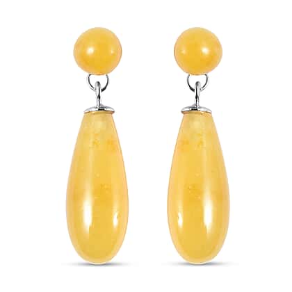 27.5 Ct Honey Jade Drop Earrings in Rhodium Plated Sterling Silver