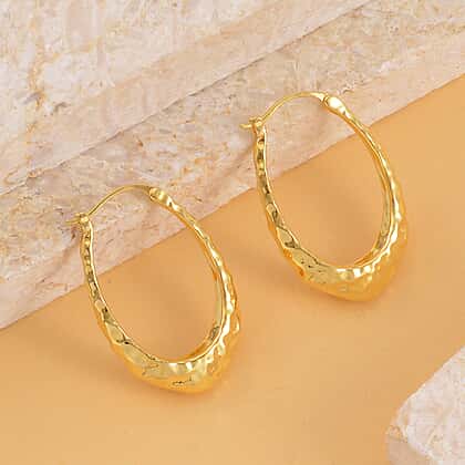 These classic Hoop Earrings in Yellow Gold Tone redefine elegance. Mirroring the warm hue of yellow gold, they add a touch of glamour to any outfit. The hammered finish adds a modern touch to the timeless design, making the hoops a wardrobe essential. Lightweight and comfortable, they are perfect for both day and night wear. Whether paired with a little black dress or jeans and a tee, these hoops complete your look with flair.