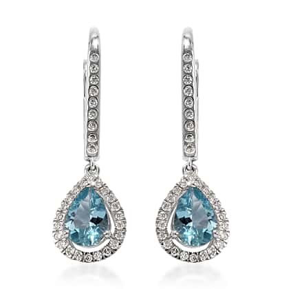 ILIANA 18K White Gold Santa Maria Aquamarine and Diamond Earrings 1.50 Ct.