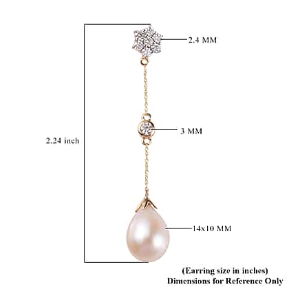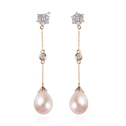 ILIANA 18K Yellow Gold Freshwater Pearl and Diamond Dangle Earrings (with Screw Back) 21.00Cts.