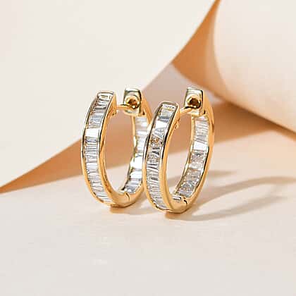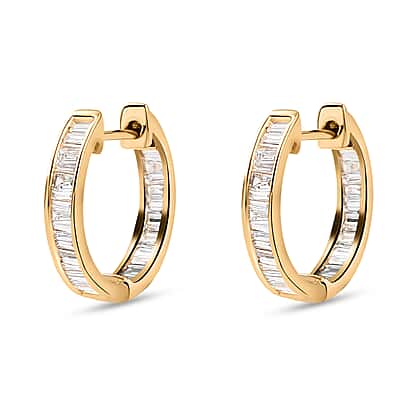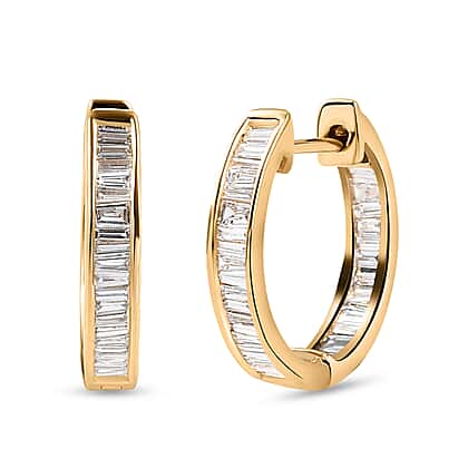 ILIANA 18K Yellow Gold White IGI Certified Diamond Earrings in Hoop Pattern 0.99 Ct, Gold Wt. 3.16 Gms