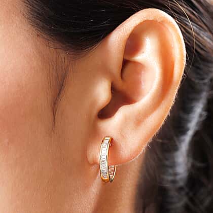 - GEMSTONE DETAILS: A total of 58 baguette-faceted cut Diamonds has been studded onto this set of earrings through bar setting