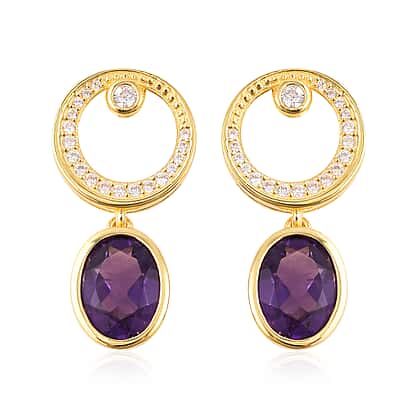 Isabella Liu Twilight 4.52 Ct Lusaka Amethyst and Zircon Drop Earrings in Gold Plated Silver