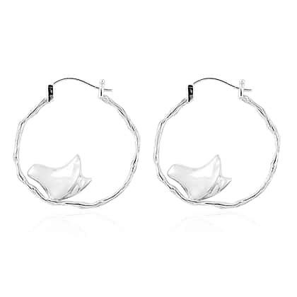 Isabella Liu Butterfly Reborn Collection - Rhodium Overlay Sterling Silver Hoop Earrings (with Clasp), Silver Wt 7.72 Gms