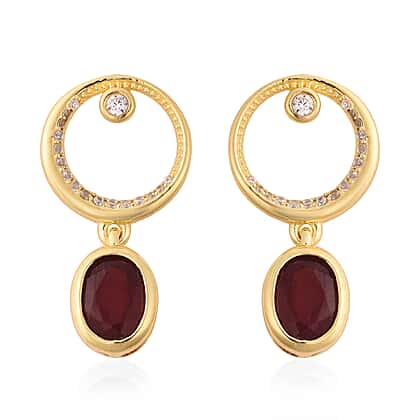 Isabella Liu Twilight Collection - African Ruby (FF) and Natural Cambodian Zircon Earrings (with Push Back) in Yellow Gold Overlay Sterling Silver 3.96 Ct.