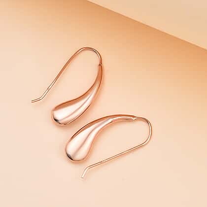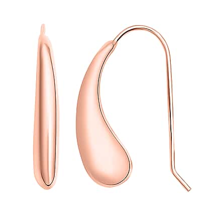The drop earring comes with a pearl drop shape. The pearl shape comes with a hook in a half-circle. The earring is made up of Rose Gold Plated Sterling Silver. The pearl shape is thick at the bottom and pointed at the top, attached with a half-circle hook clasp.