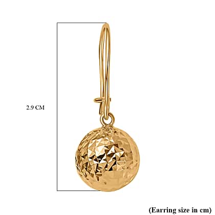 Italian Made- 9K Yellow Gold Diamond Cut Ball Earrings