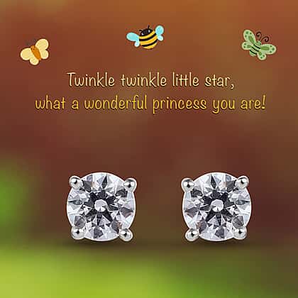 J Francis - 9K White Gold Kids Stud Earrings (with Push Back) Made with Finest CZ 0.50 Ct.
