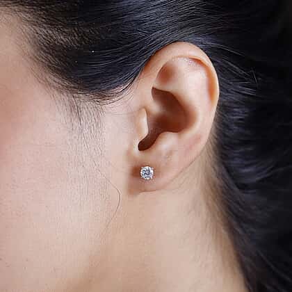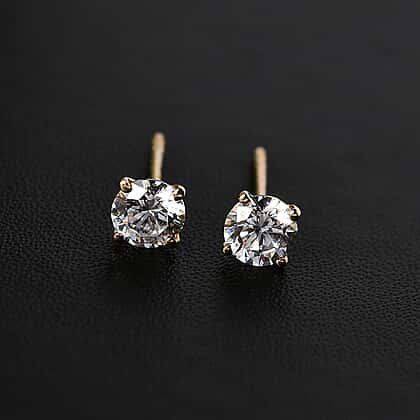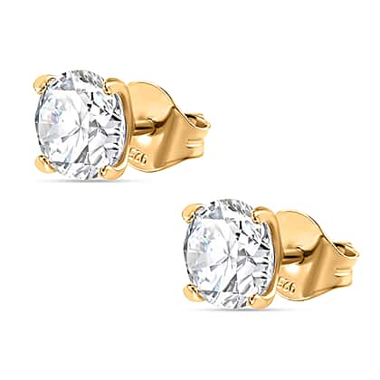 J Francis - 9K Yellow Gold Swarovski Zirconia Solitaire Stud Earring With Push Back 1.49 Ct.