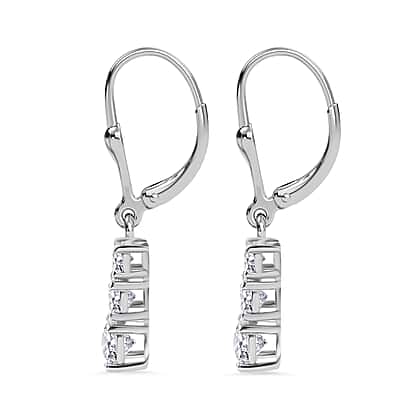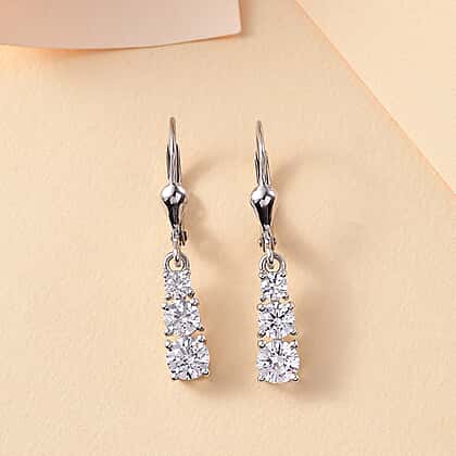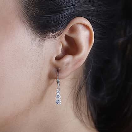 J Francis - SWAROVSKI ZIRCONIA 3-Stone Dangle Earrings in Rhodium Plated Sterling Silver 3.01 ct.