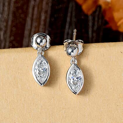 J Francis - Swarovski Zirconia Dangling Earring With Push Back in Rhodium Overlay Sterling Silver 1.65 Ct.