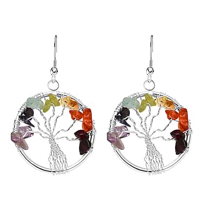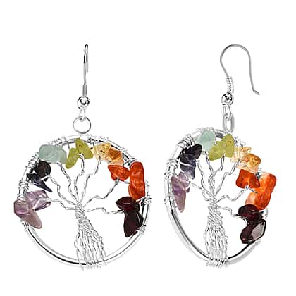 Jaipur Closeout Handmade Multi Gemstone Tree of Life Earrings in Silver Tone 2.00 Ct