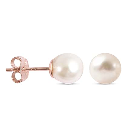 Japanese Akoya Pearl Stud Earrings in Rose Gold Plated Sterling Silver