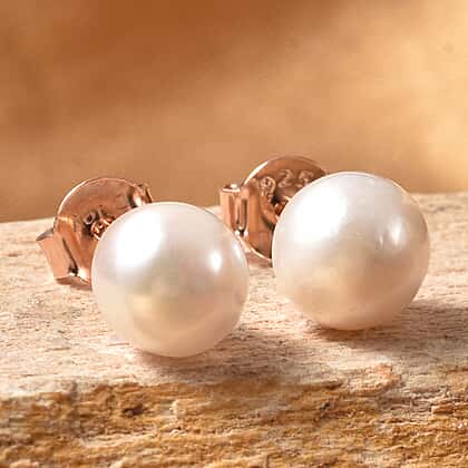 Japanese Akoya Pearl Stud Earrings (with Push Back) in Rose Gold Overlay Sterling Silver