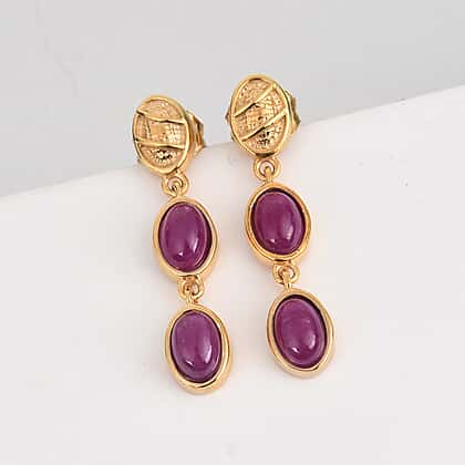 John Saul Ruby Dangle Earrings (with Push Back) in 14K Gold Overlay Sterling Silver 3.00 Ct.