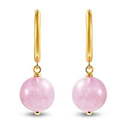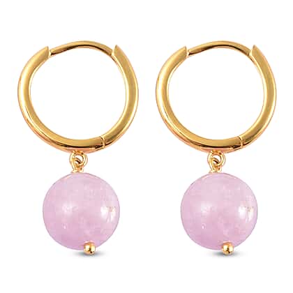 - STONE DETAILS: Round cut Kunzite has been carved to embellish this pair of earrings through yellow gold plated sterling silver wire