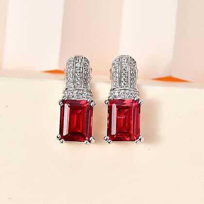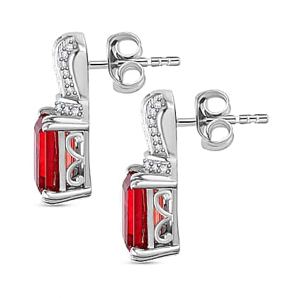 Lab Created Padparadscha Sapphire and Natural Zircon Drop Earrings in Platinum Overlay Sterling Silver 7.00 Ct.