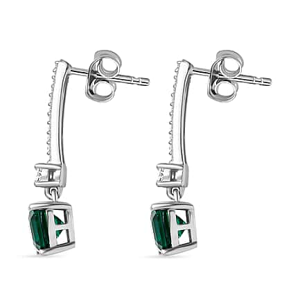 Lab Grown Emerald & White Zircon Dangling Earring in Rhodium Overlay Sterling Silver 2.06 Ct.
